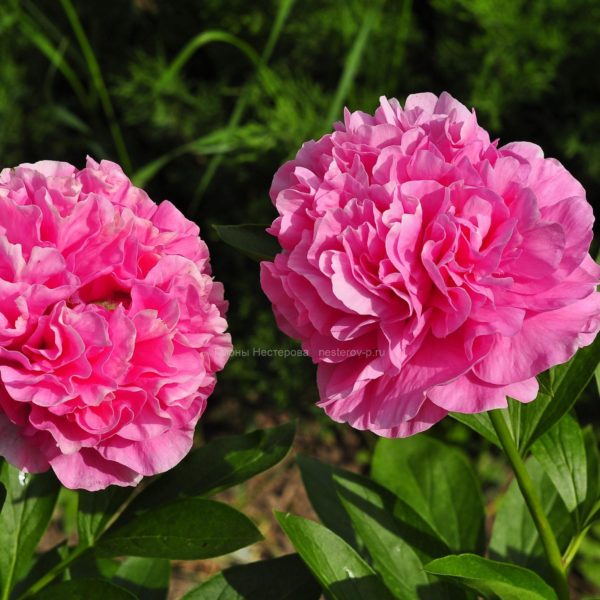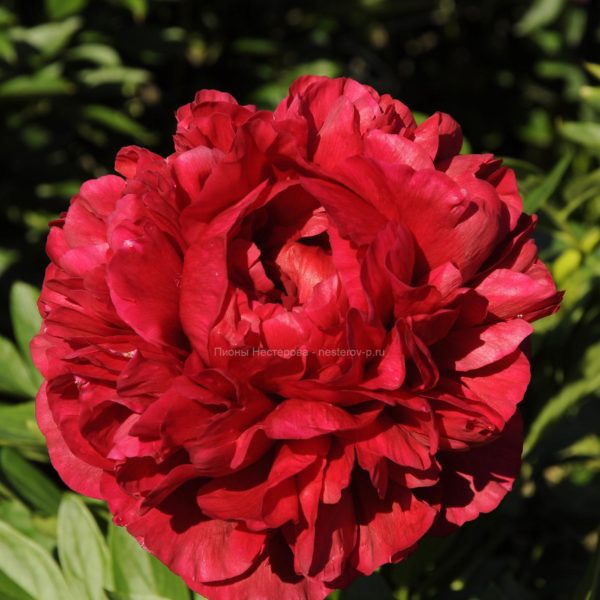 Carol (Бокстос, 1955) Межвидовый гибрид. Махровый розовидный. Диаметр цветка 16 см. Высокого строения с крупными складчатыми лепестками, за счет чего у центра как бы несколько макушек. Цветок ярко-красный, ровно-красный чистого тона. Самый красный из махровых гибридов, блестящий. Стебли изгибаются. Не выгорает. Пионы высотой 80-90 см. Срок цветения ранний. Чемпион нац. выставки США.