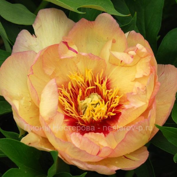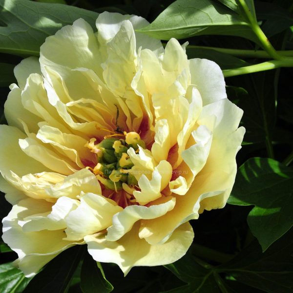 Canary Brilliants ( Р. Андерсон, 1999, США.) Форма цветка полумахровая — махровая. Часть лепестков остается светло-желтой, другие становятся сверкающими желтыми. Высота куста 70 см. Стебли у этого сорта пионов Ито-гибридов прочные. Темно-зеленая листва. Средний.
