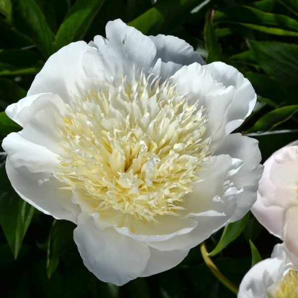 Bridal Gown Плотный, белый пион с кремовым оттенком в центре цветка. Очень красивый. Не зря в переводе его название означает “свадебное платье”. Имеет крепкие стебли. Отличается приятным ароматом.