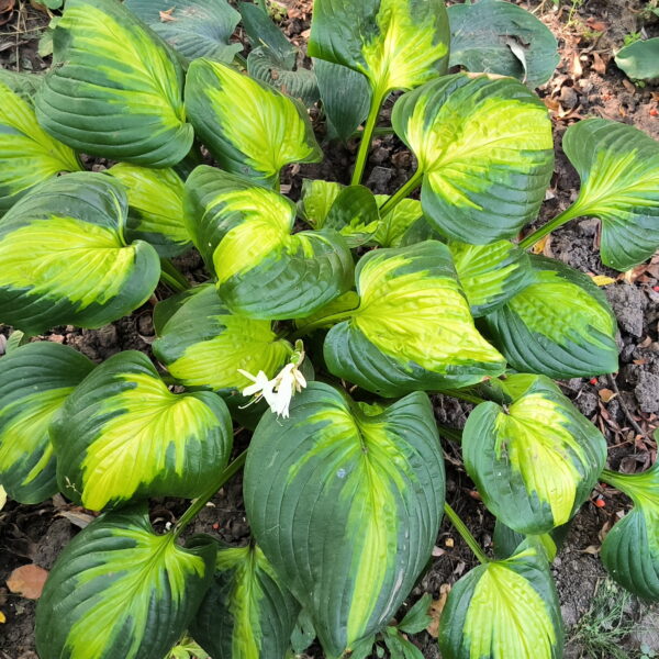 Cathedral Windows (Hans Hansen 2005) L Большая хоста с большими, очень АРОМАТНЫМИ, бледно-лавандовые цветы. Большие круглые, желтые листья, с широким темно-зеленым краем. Лист 25х23 см. Размер куста 45х80 см. Растет в полутени/тени. Прирост средний.